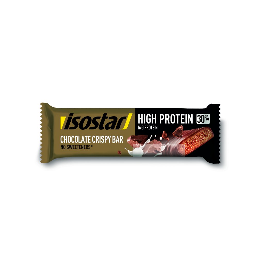 Optimálna regenerácia. Podpora rastu a zachovania svalovej hmoty. Proteínová tyčinka Isostar HIGH PROTEIN30 BAR bude tou najlepšou odmenou po náročnom tréningu. Zloženie predstavuje až 30 % obsahu kvalitných bielkovín, navyše pridáva sacharidy k obnove zásob glykogénu. Isostar HIGH PROTEIN30 BAR je chutnou proteínovou tyčinkou máčenou v mliečnej čokoláde, ktorá však dokáže pozitívne zlepšiť fázu regenerácie po silových a vytrvalostných športoch. Využite pozitívny efekt na príjem dôležitých proteínových zložiek. Znásobte svoje úsilie a posuňte výkon i efekt cvičení o třídu dál.